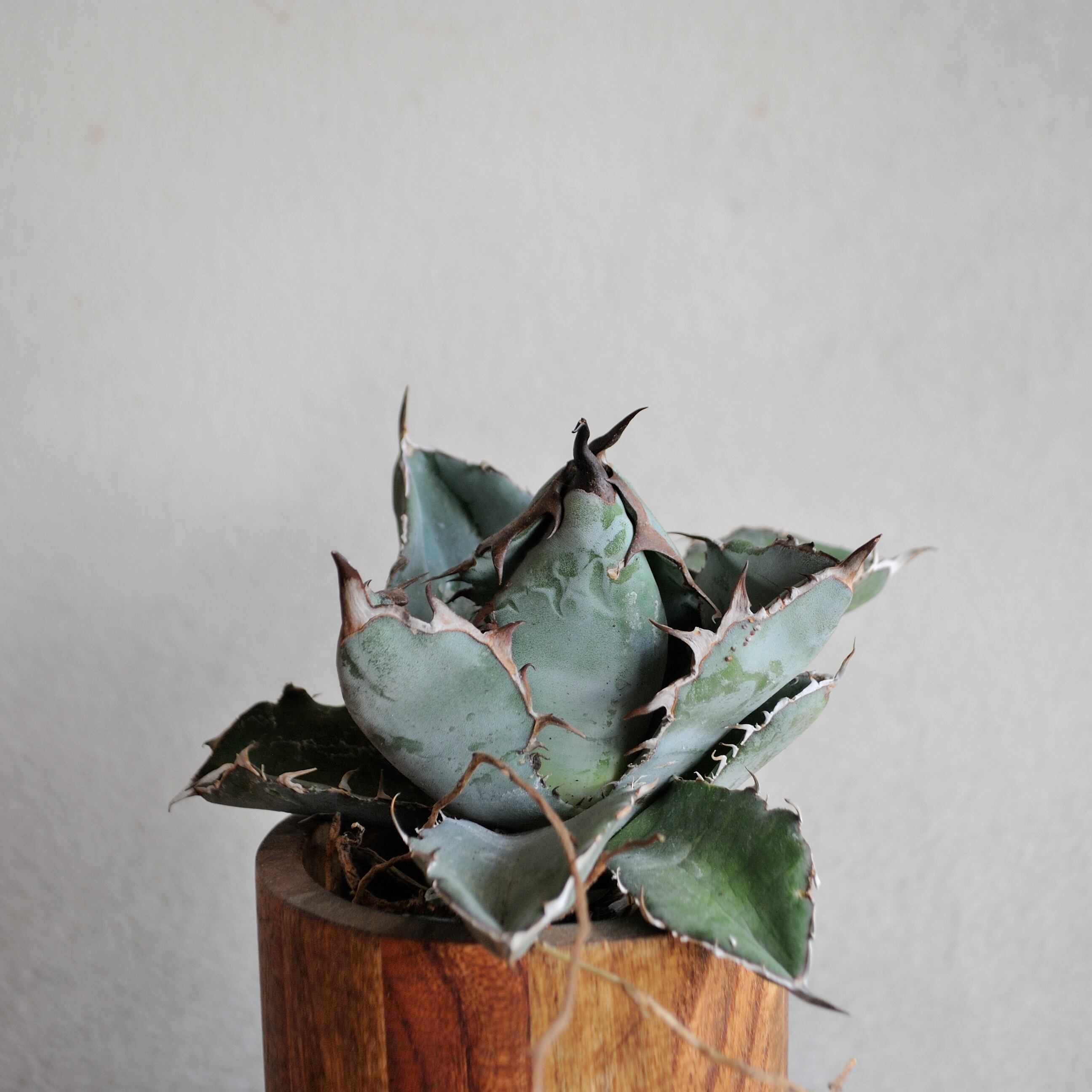 Agave titanota 'Black and blue' アガベ チタノタ ブラックアンドブルー 葉に傷や汚れがある場合がありますのでご了承の上ご購入ください。 アメリカ便 6月10日到着 撮影日:6月14日 状態:未発根 要望がありましたら追加で写真を撮りますので、ご気軽にお申し付けください。 輸送中に鋸歯や葉にダメージが生じる場合がありますので、ご了承の上ご購入いただきますようお願いします。